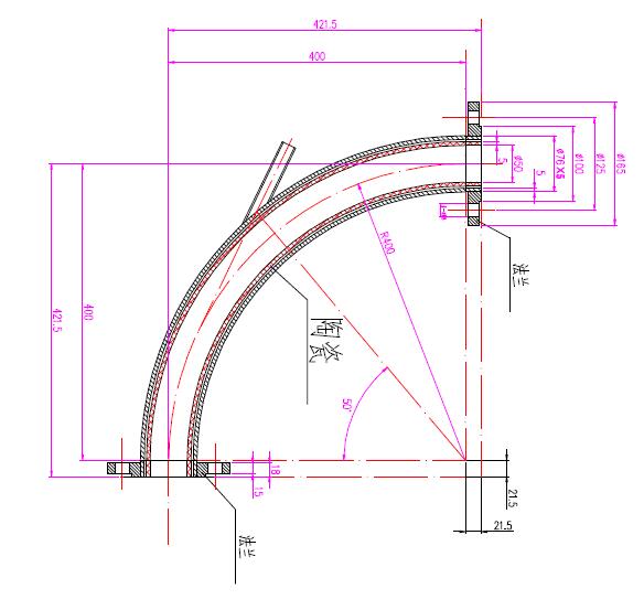圖(2)根據(jù)現(xiàn)場(chǎng)要求北京耐默公司修改后的陶瓷耐磨管道尺寸