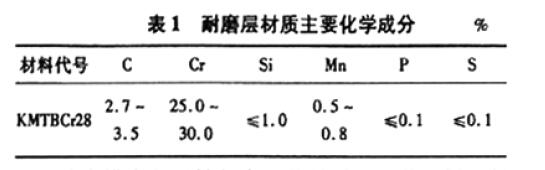 圖(1)充填管道耐磨層材質(zhì)主要化學(xué)成分