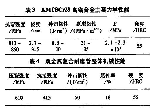 圖(3)雙金屬復(fù)合耐磨管道的內(nèi)襯高鉻合金主要力學(xué)性能